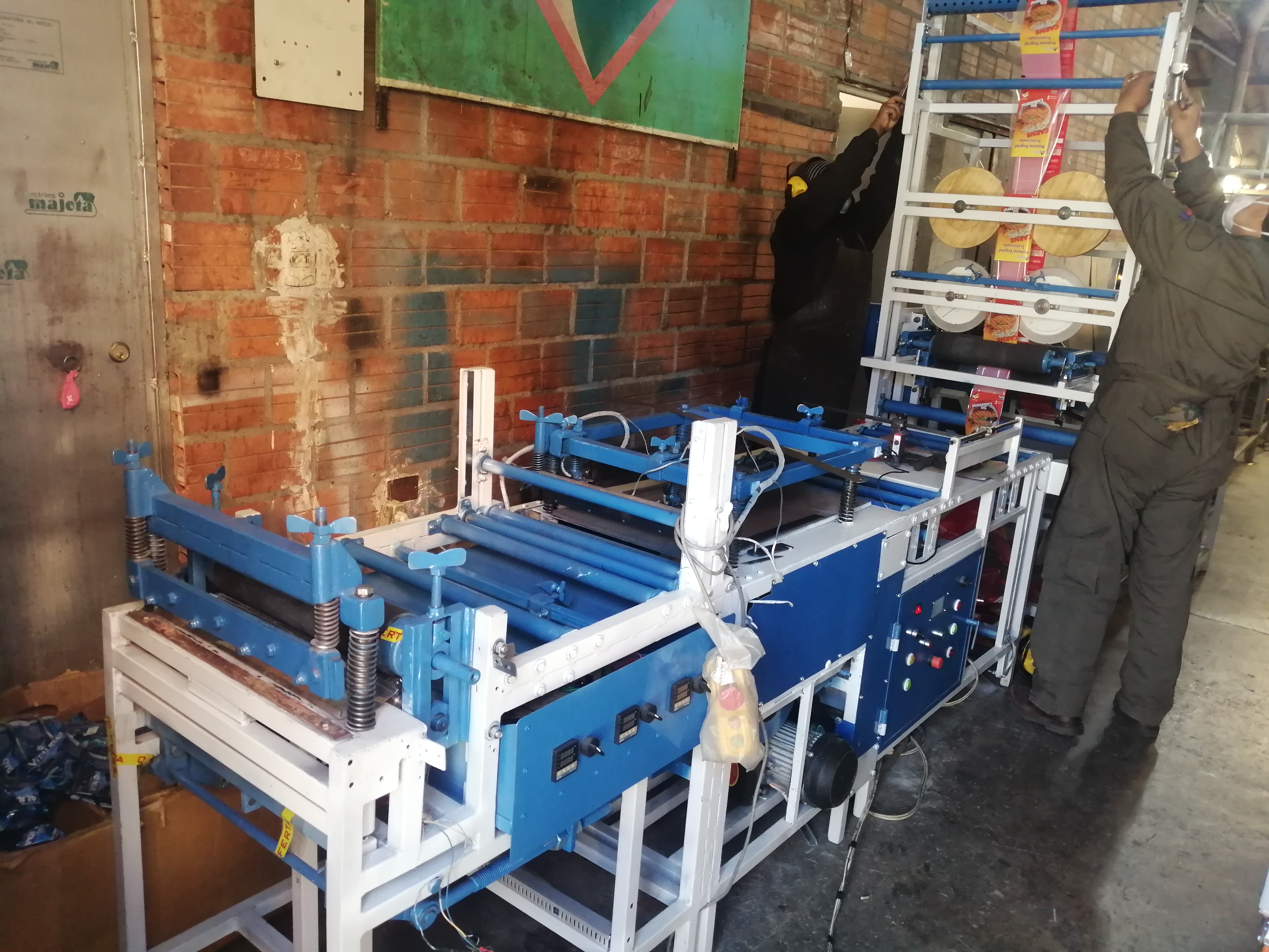 Description: Nuestra maquina es una confeccionadora de bolsas creadaa y desarrollada por Industrias majota, esta maquina puede hacer todo tipo de bolsas de plastico con fuelle y lisas.